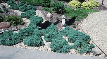 Blue Star Juniper: 1-2' ht; 2-4' spread; dense, mounded habit; evergreen; bright silver-blue foliage; small, reddish brown cones mature to purplish black; rusty brown bark exfoliates in papery strips; medium texture; site adaptable; prefers well-drained soil; grows to 2 foot spread in 10 years; very slow growth rate; sun. Singleseed Juniper is usually present in landscapes in the form of one of its cultivars. Like most junipers it tolerates dry soils.