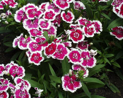 Dianthus should be planted where they will receive at least 4-5 hours of full sun each day. They thrive in fertile, fast draining, slightly alkaline (pH 6.75) soil. Avoid over-watering because it may tend to turn the foliage yellow. Usually a weekly watering of established plants will suffice unless the weather is extremely dry. Dianthus will often reseed themselves, so don't be too hasty in removing spent plants from the ground. Perennial varieties may be propagated by tip cuttings, layering or division. Spent flowers should be removed promptly to promote continued blooming.