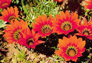 Gazania rigens is native to South Africa, where it is called Rankbotterblom by Afrikaaners & Ububendle by the Zulu. It is distributed in America as Treasure Flower or Rainbow Daisies.
