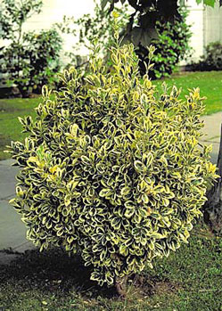 Excellent hedge plant with attractive, silvery-white variegation to the leaf margins adds unique color and texture to the landscape. Can be grouped to form a low screen. Tolerates poor soils, heat. Evergreen. Full sun. Moderate grower to 6 feet tall, 3 feet wide. Cutting grown.