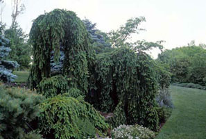 Description: After deciduous trees lose their leaves and herbaceous plants go dormant, conifers are stars of the landscape. Weeping Norway Spruce is especially attractive drooping over a wall or on a slope. While it may grow 10 feet wide by 3 feet tall as a ground cover, its upright height usually peaks at about 8 feet. All conifers add texture, form and color to the landscape.