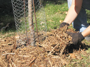 In some cases, mice and voles may tunnel under mulch and cause damage by chewing the plant bark. Pull the mulch back 6 inches from the stems. A circle of crushed stone about 6 inches wide or a cylinder of 1/4-inch hardware cloth around the trunk may also be helpful.