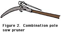 can be made of several materials and can either be in sections that fit together or that telescope. Wooden poles are sturdy but heavy, while aluminum poles are light but can conduct electricity if they touch an overhead electrical wire. Fiberglass or some type of plastic compound is probably the best pole material. Poles can be fitted with saws, but these are usually very frustrating to use [Figure 2].